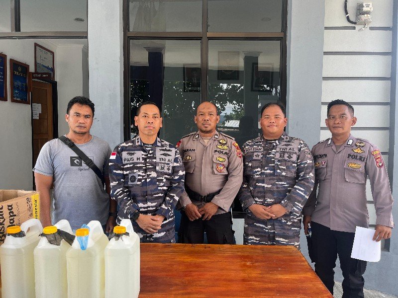 Nabire, DUTAMEDAN.COM, TNI AL/ Koarmada III – Bertempat di Mako Pangkalan TNI AL (Lanal) Nabire, Komandan Lanal Nabire Lekol Laut (P) Pius Herdasa Krisna Murti, S.T., M. T, CBEI., CACA., CRMP., CHRMP. menyerahkan tangkapan beserta barang bukti penyelunduoan miras illeggal kepada Polsek KP3 Laut Pelabuhan Nabire yang diwakili Aiptu Imran, turut hadir dalam penyerahan tersebut Pgs. Pasops Lanal Nabire, Kaur Hartib Lanal Nabire, Aipda Hendi Hnieur selaku Kanit Opsnal Sat Narkoba Polres Nabire, dan Bripka Sepriyanto dari Polsek KP3 Laut Pelabuhan Nabire. Sabtu (09/12/23).