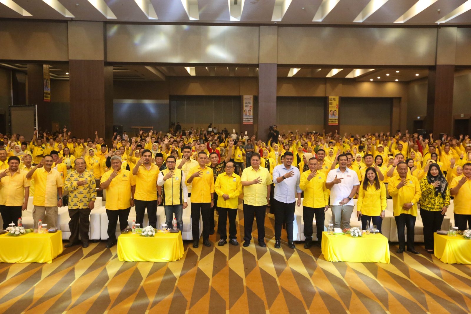 DUTAMEDAN.COM, Medan – Ketua Umum Partai Golkar Airlangga  Hartarto menyerukan semangat kepada seluruh kader untuk memenangkan Golkar dan pasangan Prabowo-Gibran di kontestasi Pemilihan Presiden (Pilpres) 2024 mendatang.