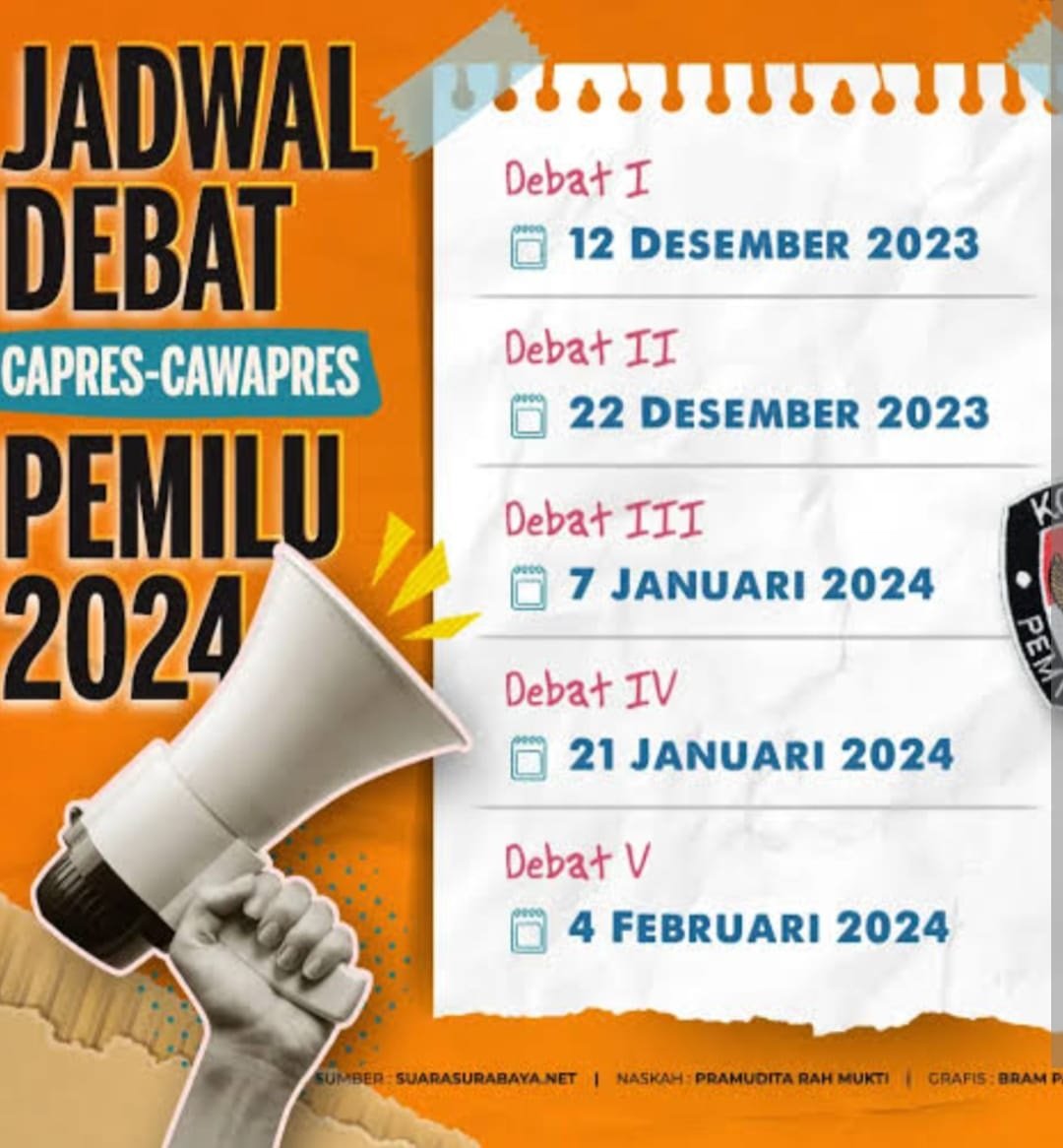 Putaran debat kandidat akan dimulai 12 Desember ini dari lima kali jadwal debat yang sudah disusun oleh KPU RI sampai tanggal 4 Februari 2024 nanti.