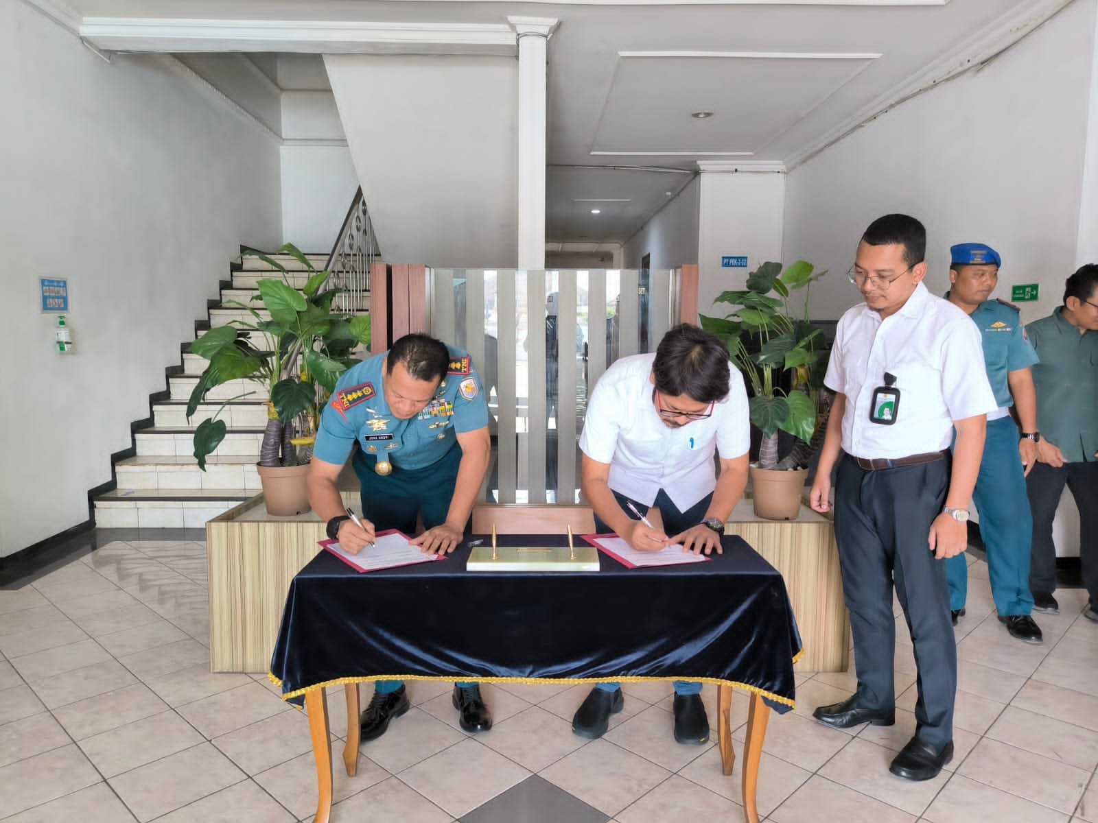Selain itu, setelah menerima bantuan kendaraan dinas dilaksanakan penandatanganan naskah serah terima dari PT. Wika Semarang kepada Komandan Lanal Semarang yang disaksikan oleh Palaksa Lanal Semarang, Ka Akun Lanal Semarang, Pasintel Lanal Semarang, Dandenpom Lanal Semarang, Pasprogar Lanal Semarang, Paspotmar Lanal Semarang, HSE Wika, Project Manager Wika, serta staf Kementerian PUPR.