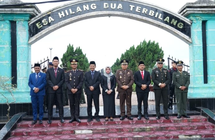 Titik lokasi di Taman Makam Bahagia dan Jembatan Titi Gantung, Kajari Muhammad Muchsin, S.H., M.H.  selaku Inspektur Upacara, memimpin rangkaian upacara yang berlangsung khidmat, mulai dari penghormatan kepada arwah para pahlawan, mengheningkan cipta, peletakan karangan bunga dan penaburan bunga.
