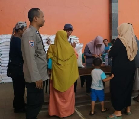Cegah Kericuhan, Polsek Cimaragas Polres Ciamis Giat Pengamanan Penyaluran Bantuan Pangan di Desa Janggala.