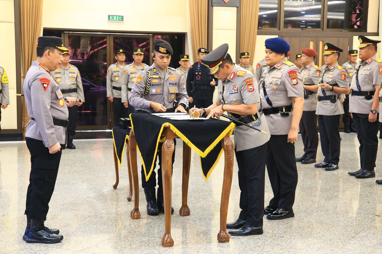 Sertijab berlangsung di Gedung Rupatama Mabes Polri, Jakarta Selatan, Kamis (14/12/2021). Sertijab tersebut berdasarkan Surat Telegram Kapolri nomor ST/2750/XII/KEP./2023 tanggal 7 Desember 2023 yang ditandatangani oleh Asisten Kapolri Bidang Sumber Daya Manusia Irjen Dedi Prasetyo.
