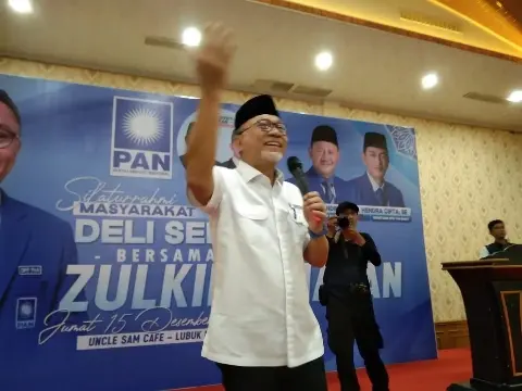 Zulkifli Hasan datang menyapa warga Lubukpakam didampingi Ketua DPW PAN Sumut Syah Afandin ( Ondim), Ketua Fraksi PAN DPRD Deliserdang Bayu Sumantri Agung dan sejumlah pengurus DPD serta DPW PAN Sumut lainnya.