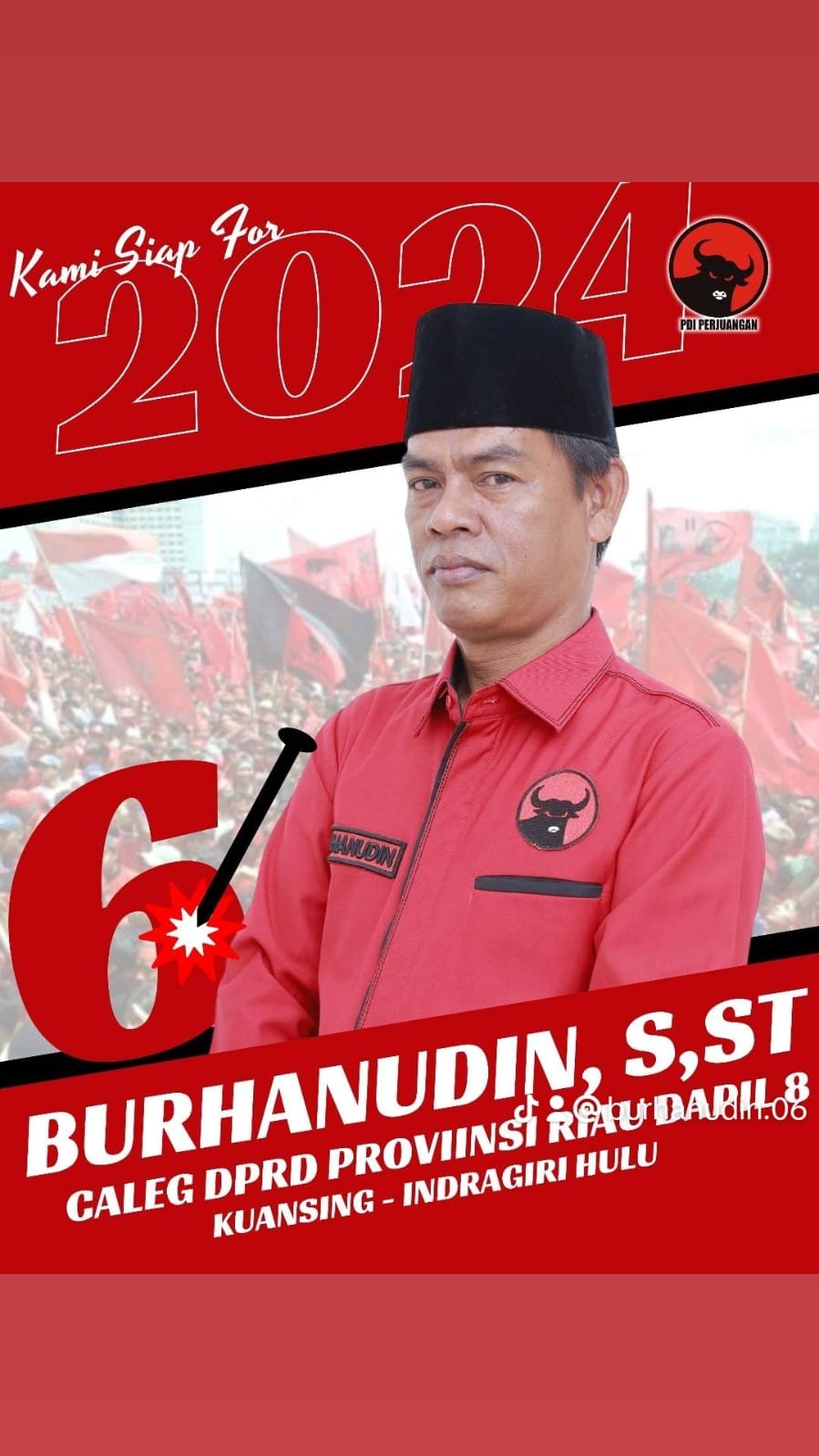 Seiring hal tersebut, juga terdapat nama Burhanuddin, SST dari Partai Demokrasi Indonesia Perjuangan (PDI-P) untuk Daerah Pemilihan (Dapil) Riau 8, Inhu-Kuansing, dengan nomor urut 6.