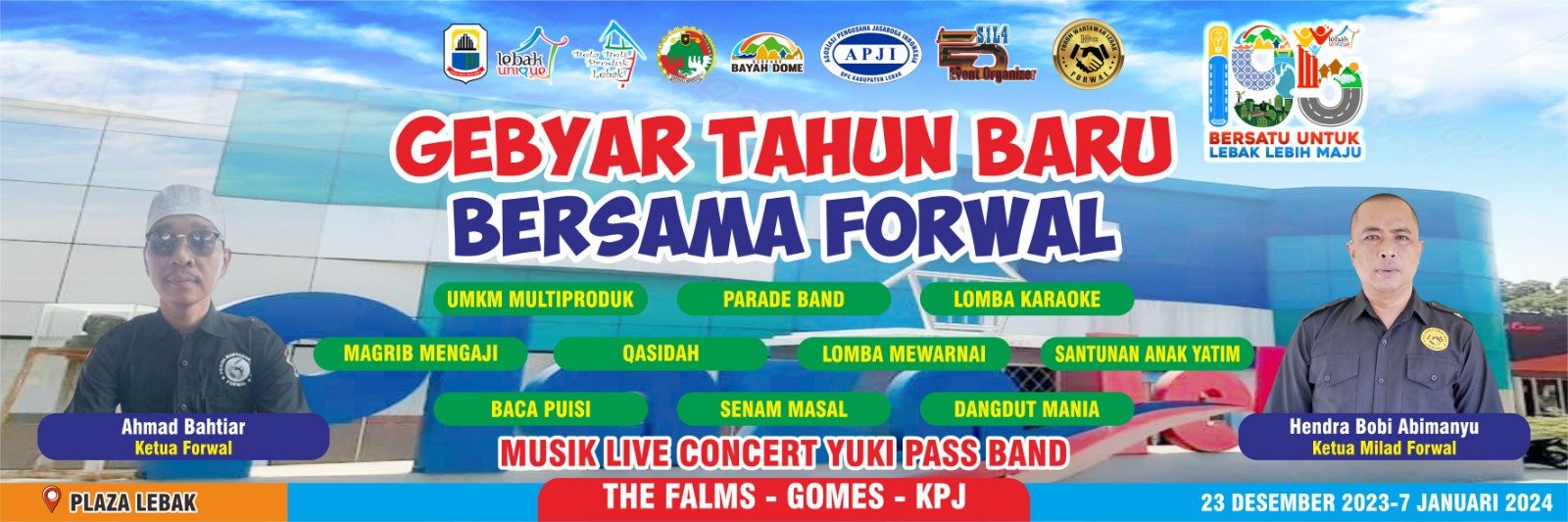 Acara Milad Forwal yang bekerjasama dengan salahsatu Dinas yang dominan memberdayakan produk – produk Usaha Mikro Kecil dan Menengah (UMKM) ini dibentuk dalam satu kegiatan bazaar yang akan dilaksanakan pada tanggal 23 Desember sampai dengan 8 Januari dan berlokasi di lapangan parkir Plaza Lebak.