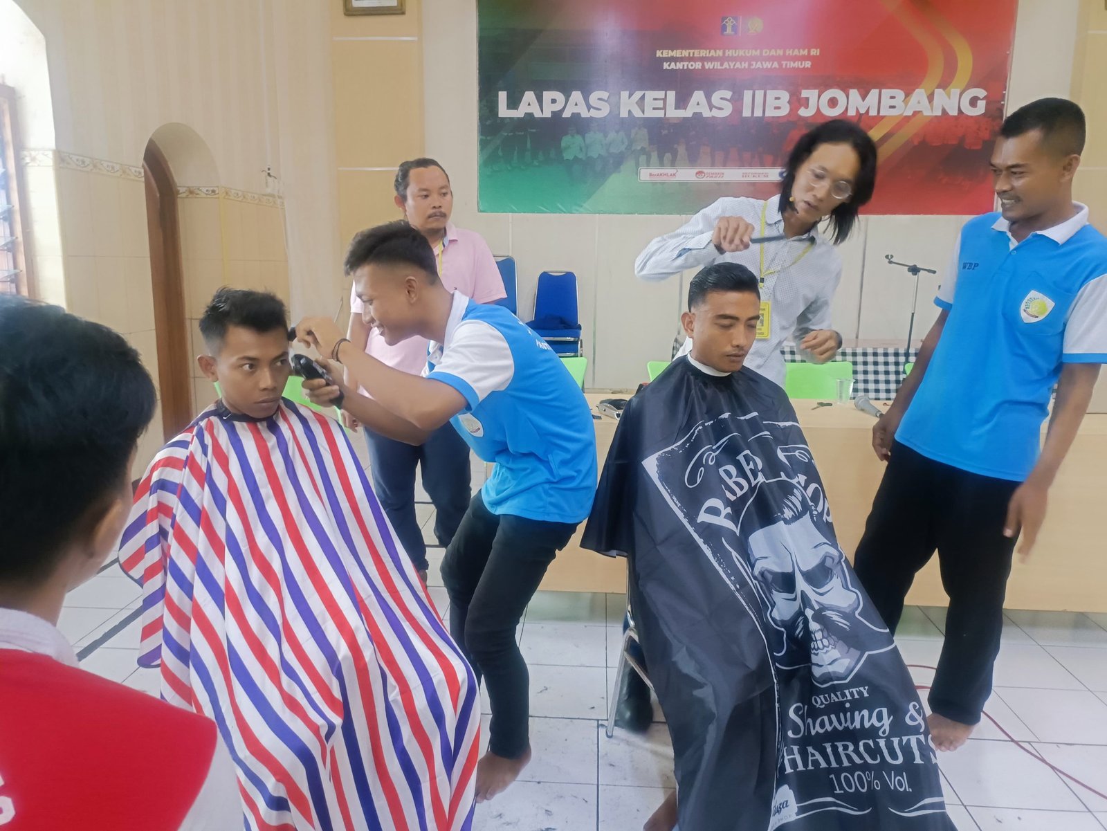 DUTAMEDAN.COM, Jombang – Lembaga pemasyarakatan Kelas IIB Jombang Kanwil Kemenkumham Jatim mengadakan pelatihan kemandirian pangkas rambut bersama dengan mahasiswa pkl dari Universitas Negeri Malang di aula Lapas (Jumat, 08/12/2023).