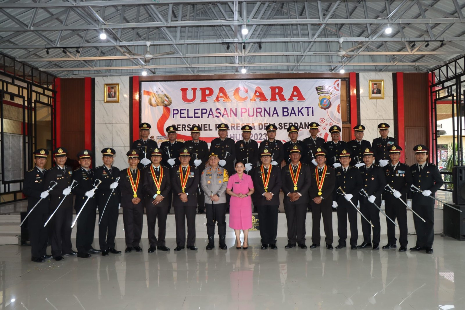 Deli Serdang, DUTAMEDAN.COM – Kapolresta Deli Serdang AKBP Raphael Sandhy Cahya Priambodo,SIK pimpin upacara pelepasan purna bakti kepada 9 purnawirawan Polri yang dihadiri PJU bersama Kapolsek serta seluruh anggota Polresta Deli Serdang di Aula Terbuka Polresta Deli Serdang, Senin (18/12/2023) Pagi.
