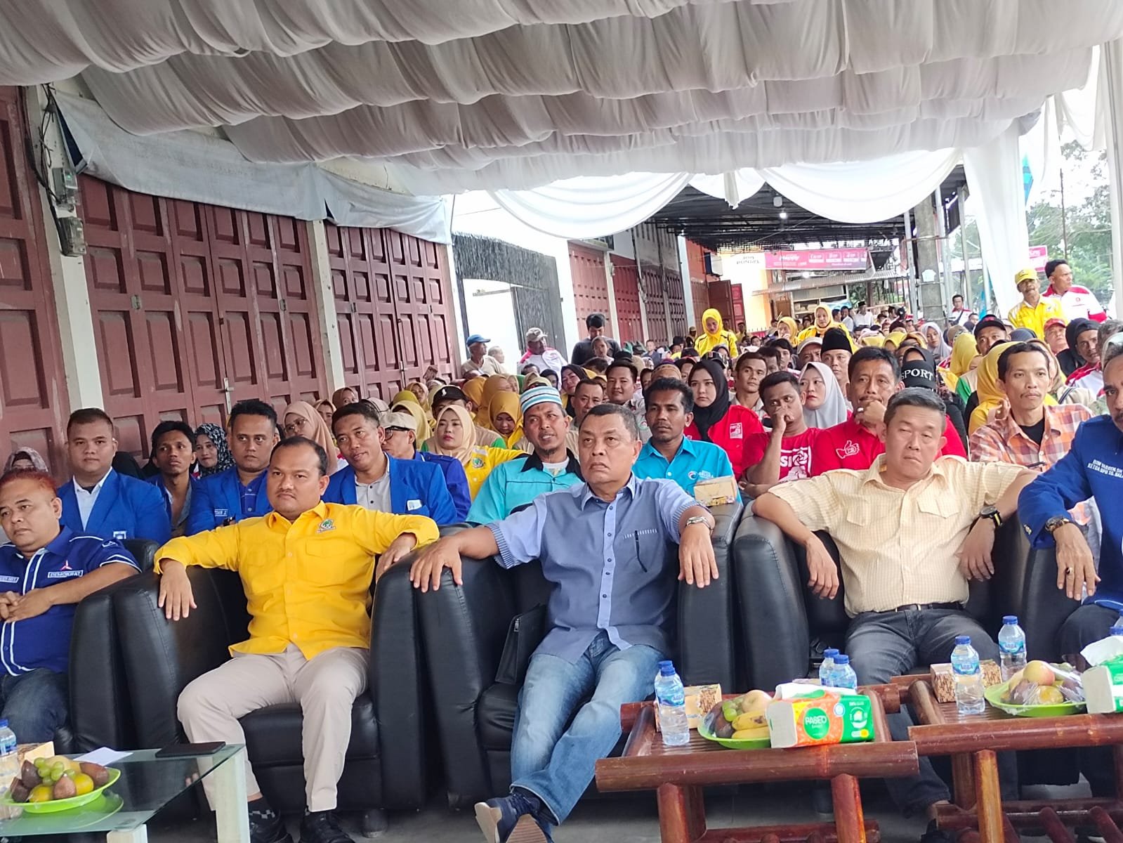 “Berkaca pada pemilu 2014 Prabowo meraih kemenangan 56,6 persen dan 2019 lalu kemenangan Prabowo mencapai 72,1 persen, jadi kami akan fokus sosialisasi dan berkordinasi agar suaranya pada 2024 nanti naik dan tetap terjaga untuk kemenangan Prabowo Gibran, syukur-syukur sampai target kita dan ini menjadi PR buat kita semua,” kata Mahyaruddin yang juga Ketua DPD Golkar Kota Tanjungbalai.