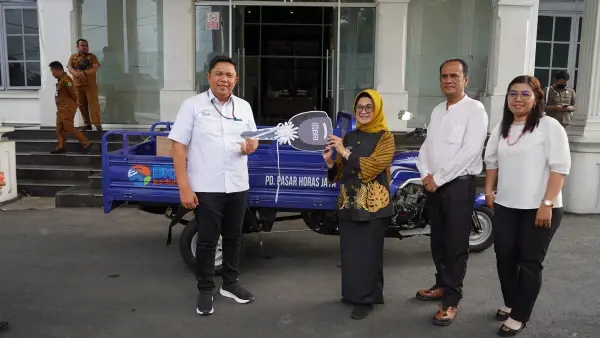 DUTAMEDAN.COM, SIANTAR – Wali Kota Pematang Siantar dr Susanti Dewayani SpA bersama Dirut PD Pasar Horas Jaya Bolmen Silalahi menerima CSR BRI yang juga dihadiri langsung oleh Pinca BRI Yanri Eka Putra satu Unit Motor untuk penggunaan kebersihan PD Pasar Horas Jaya, bertempat di balai kota, Senin (18/12/2023).