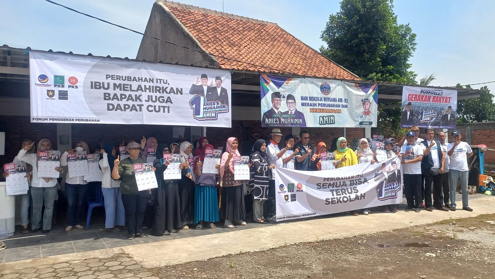 Para emak-emak relawan AMIN semangat dalam aktivasi Posko TPS Gerakan Rakyat di Depok tersebut kendati di bawah terik panas matahari. “Di sini hadir ada dewi-dewi yang merupakan bagian dari ARB R1 dan emak-emak dari warga sekitar,” ungkap Suhardi.