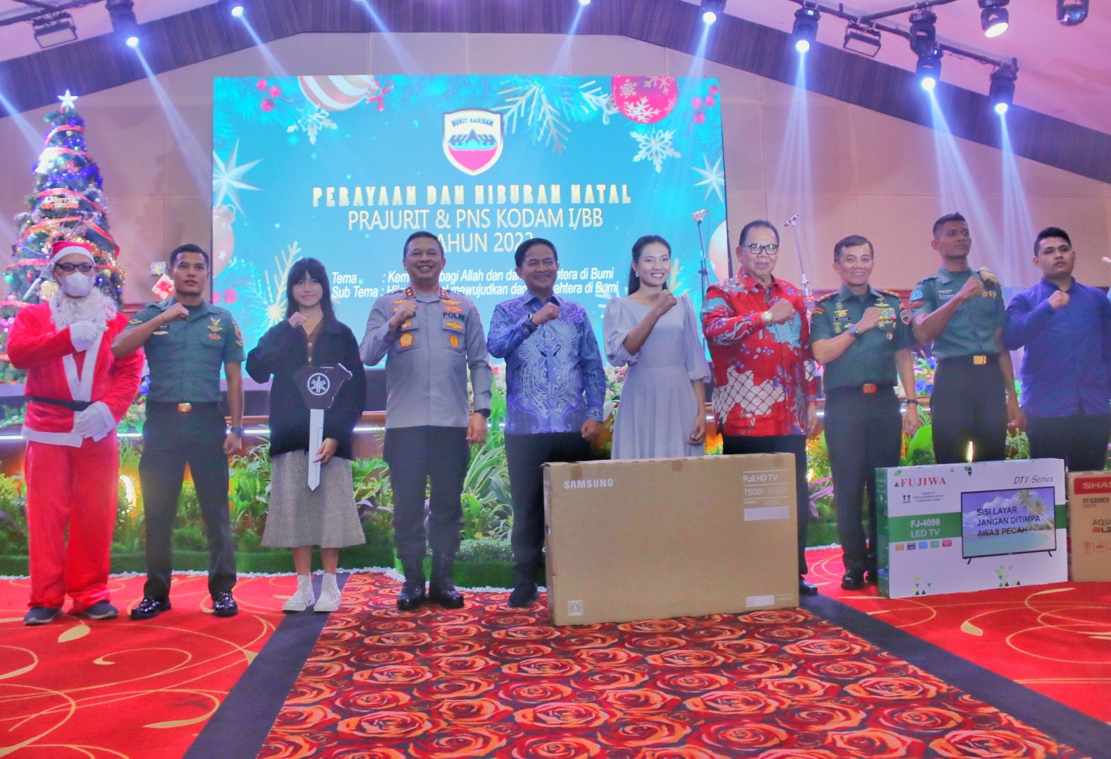 Penjabat (Pj) Gubernur Sumatera Utara (Sumut) Hassanudin menghadiri Perayaan dan Hiburan Natal Prajurit dan ASN jajaran Komando Daerah Militer I Bukit Barisan (KODAM I /BB) tahun 2023 di Wisma Benteng Jalan Kapten Maulana Lubis Nomor 6 Medan, Kamis (21/12) malam .