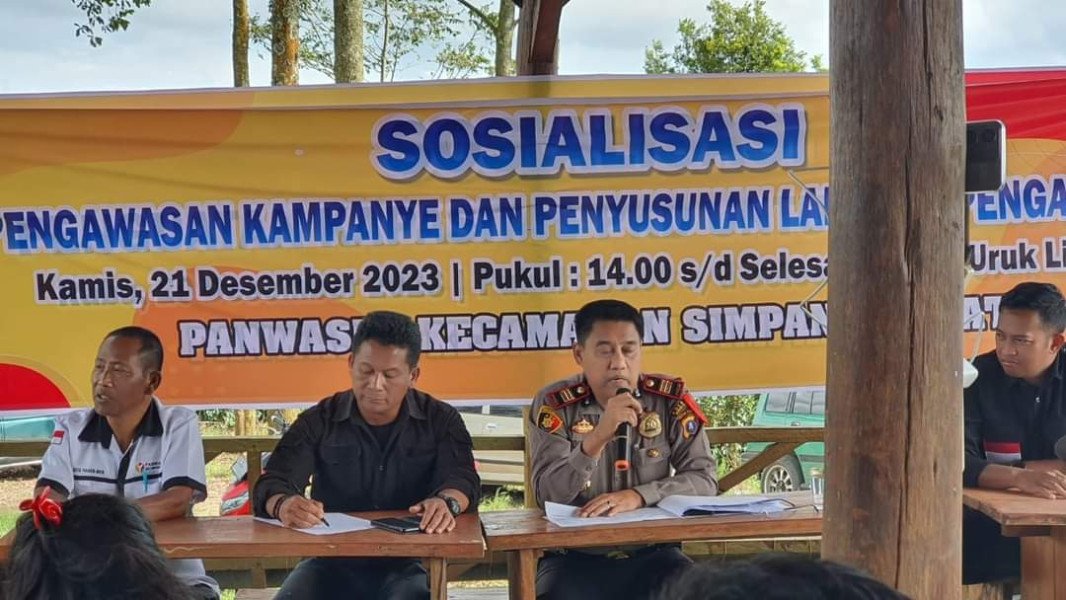 DUTAMEDAN.COM, KARO – Kapolsek Simpang Empat AKP Ridwan Harahap Polres Tanah Karo menghadiri acara sosialisasi produk hukum dalam menghadapi kampanye Pemilu serentak tahun 2024 yang dilaksanakan oleh Panwaslu Kecamatan Simpang Empat Kabupaten Karo pada hari Kamis 21/12/2023 di Desa Lingga.