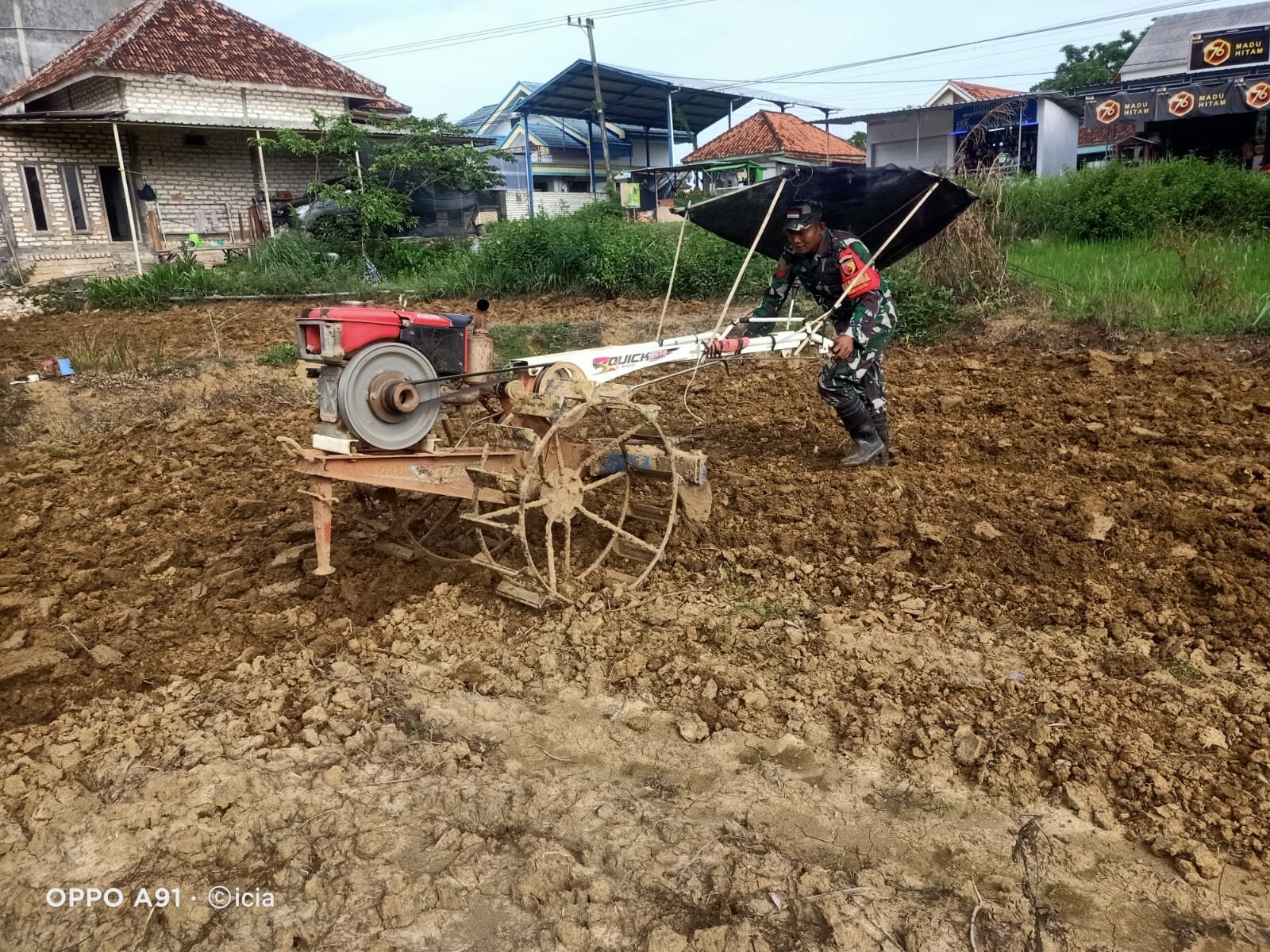 Koptu Moh Imam memberikan kontribusinya dengan secara sukarela membantu proses pembajakan sawah milik Taufik, seorang warga Dusun Glugur 2, Desa Pal Laok, Kecamatan Palengaan pada Sabtu (23/12/2023).