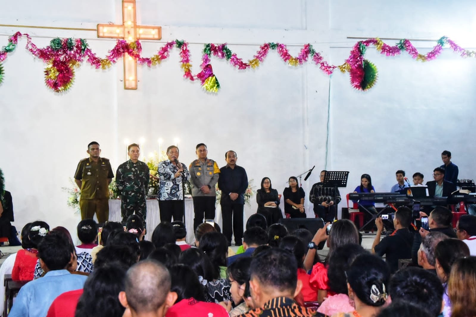 Bupati mengatakan meskipun hujan deras, umat Kristiani tetap melaksanakan ibadah dalam keadaan aman, tenang, tenteram. Hal tersebut merupakan pertanda baik.