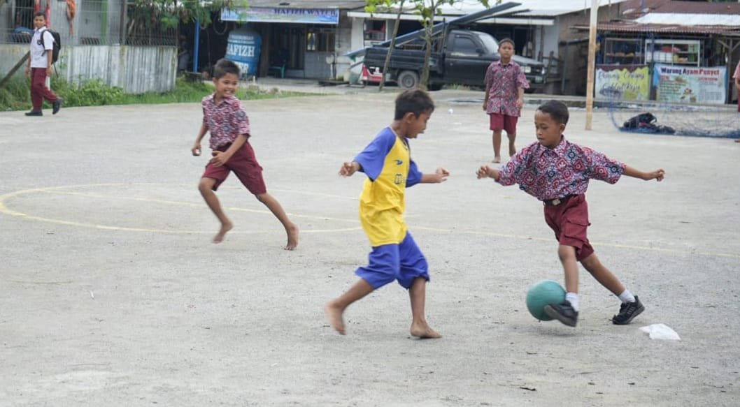 MEDAN, DUTAMEDAN.COM – Dengan dibangunnya lapangan di samping Sekolah Menengah Pertama (SMP) Negeri 26 Medan Kelurahan Belawan Sicanang, kini anak-anak disana tidak lagi bermain bola di Jalan.