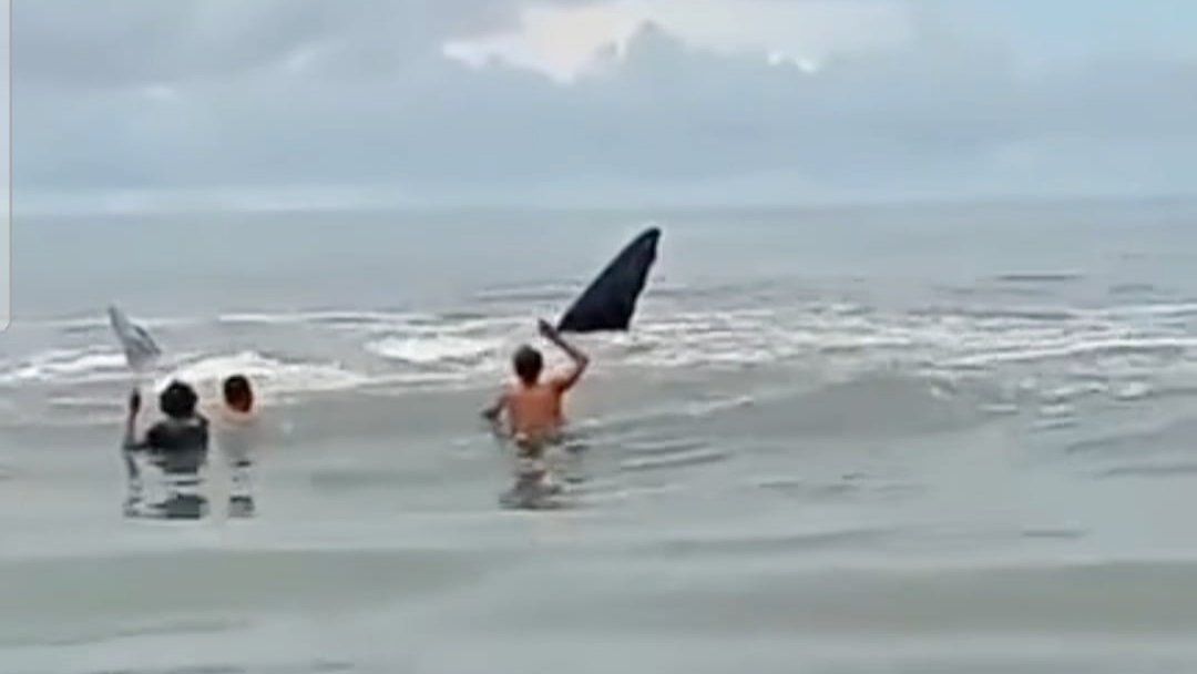 Ikan paus ini pun menjadi tontonan warga sekitar dan tidak sedikit warga bermain dengan ikan tersebut.