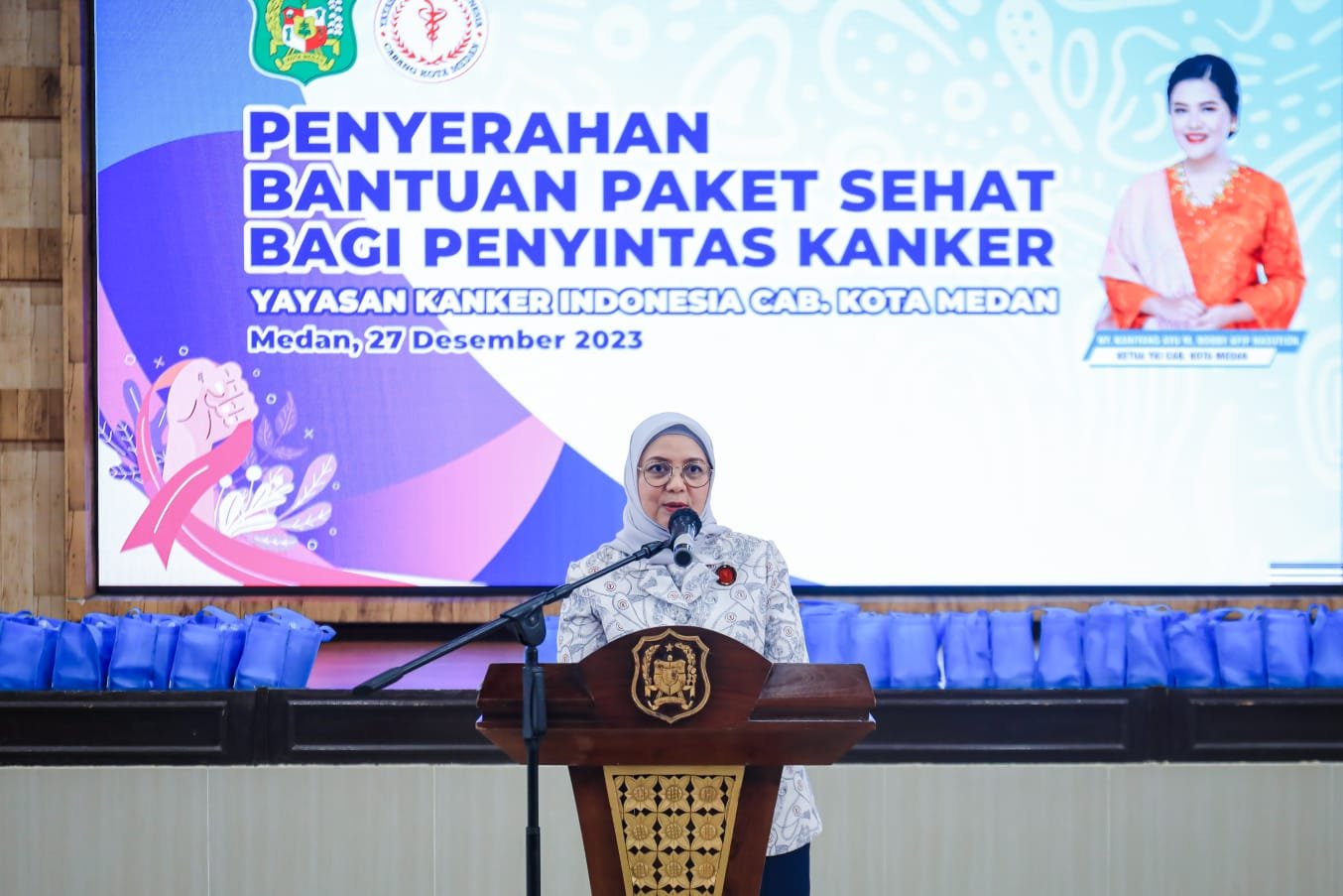 Bantuan ini pun disambut suka cita dan rasa syukur oleh para penyintas kanker. Penyerahan bantuan paket sehat ini diberikan Ketua YKI cabang Kota Medan, Kahiyang Ayu Bobby Nasution diwakili Sekretaris YKI cabang Kota Medan, Ismiralda Wiriya Alrahman kepada penyintas kanker di gedung serbaguna PKK Kota Medan, Rabu (27/12/2023).