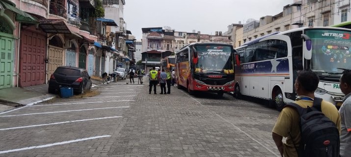 Hanya saja, upaya membuat pembatas jalur parkir tersebut, dihadang oleh pihak perusahaan bus Paradep.