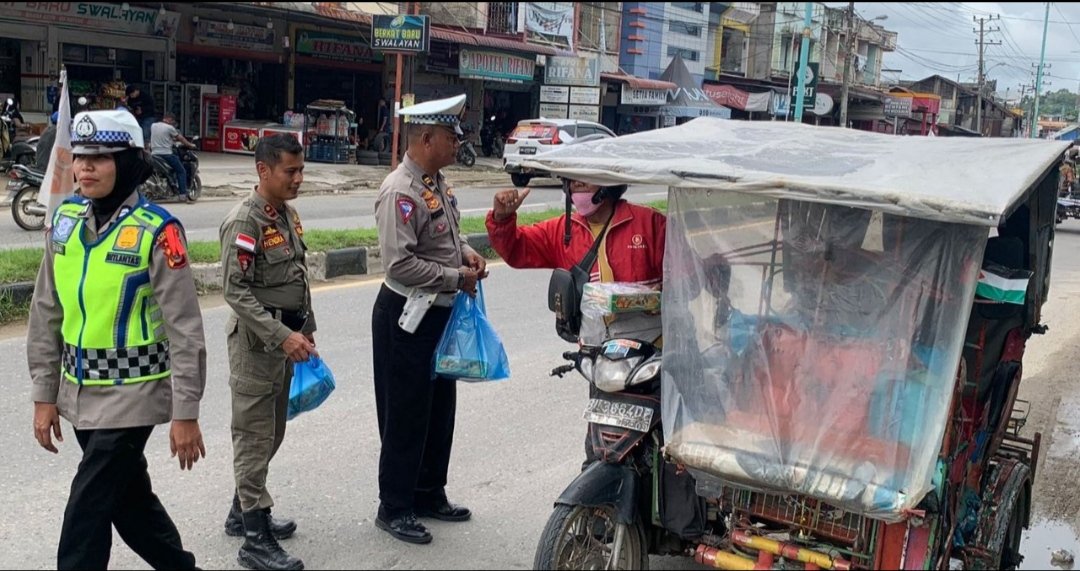 Aceh Timur, DUTAMEDAN.COM – Sebagai bentuk kepedulian institusi Polri kepada masyarakat terus diwujudkan oleh jajaran Sat Lantas Polres Aceh Timur, salah satunya dengan rutin mengadakan kegiatan Jumat Berkah.