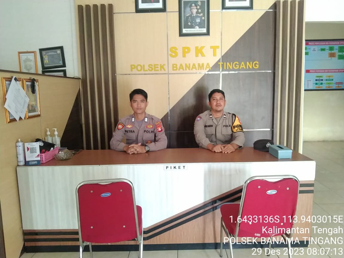 Polres Pulang Pisau, DUTAMEDAN.COM – Dalam upaya memberikan pelayanan yang terbaik kepada Masyarakat Personil piket Polsek Banama Tingang, Polres Pulang Pisau, Polda Kalteng Standby 1 X 24 Jam di Mako Polsek Banama Tingang untuk memberikan pelayanan kepada Masyarakat, Kec. Banama Tingang, Kabupaten Pulang Pisau, Kalteng, Jumat/29/12/2023), Pagi.