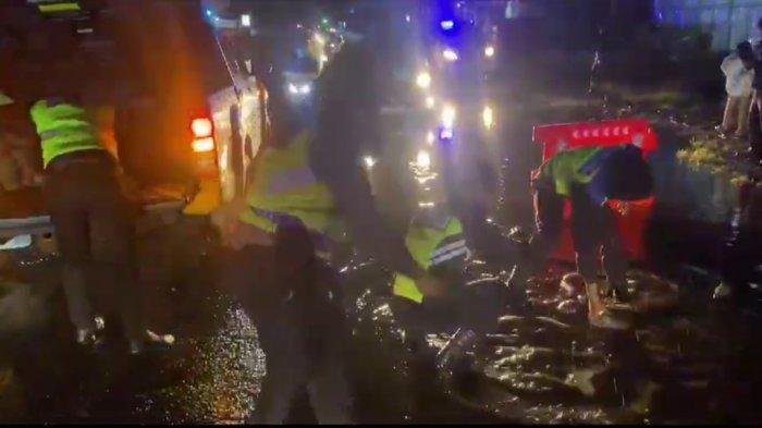 Saat dilakukan penanganan awal, terlihat arus lalulintas sudah mulai bisa berjalan namun masih dilakukan sistem buka tutup.