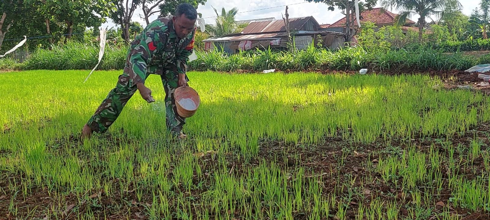 Home index Dukung Ketahanan Pangan, Babinsa Desa Potoan Laok Berikan Bantuan Pemupukan Tanaman Padi