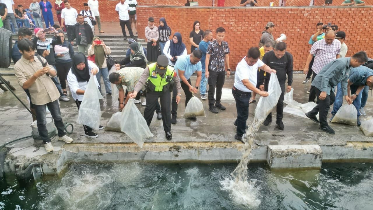 Pelepasan peserta lomba memancing ini ditandai dengan penaburan bibit ikan nila oleh Bupati Simalungun guna menjaga ekosistem di danau Toba.